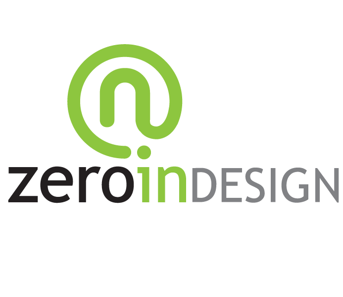 Zero In Design is a small business who specializes in graphic design services. Creative developed logo and branding element. Logo Design